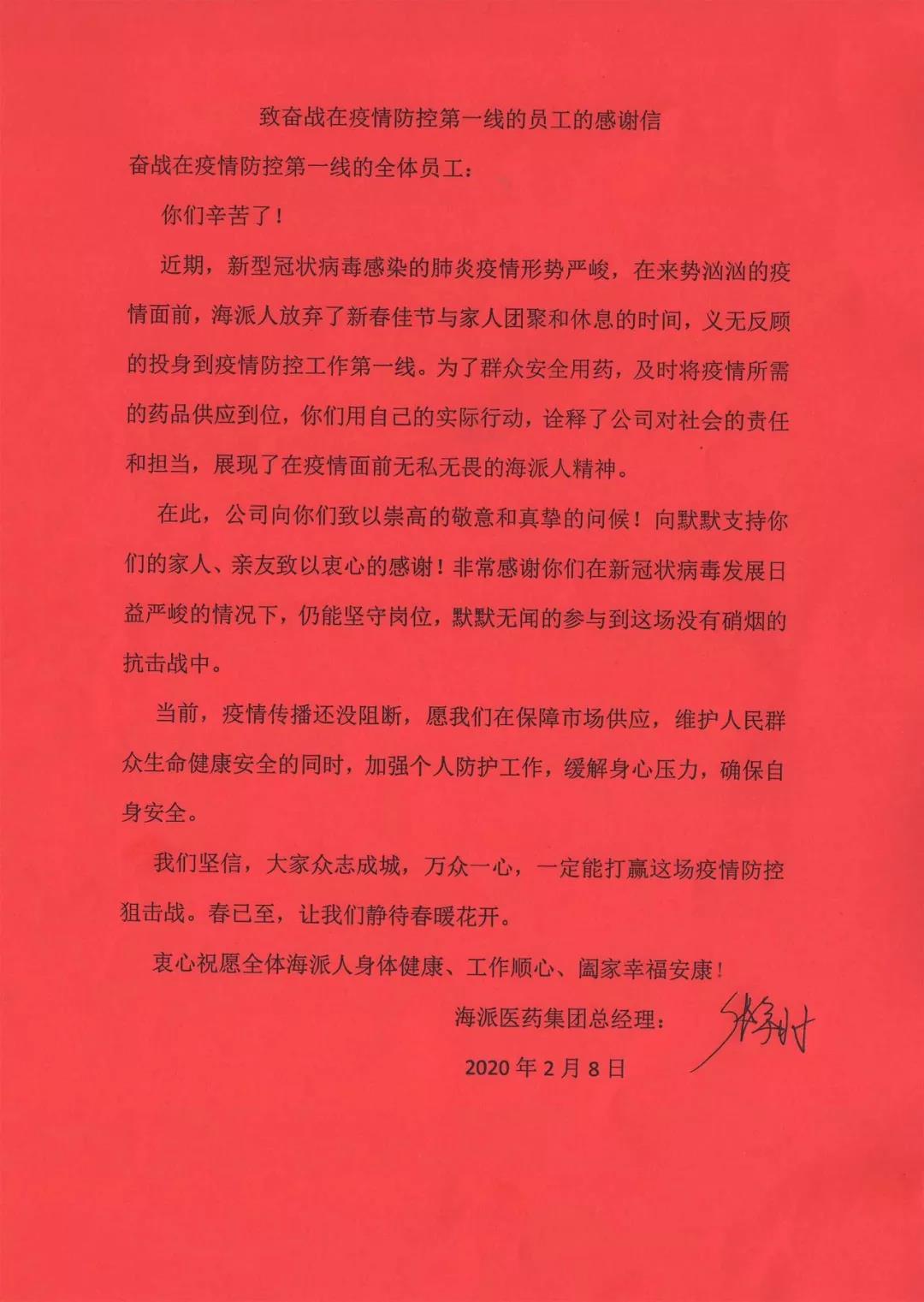 海派醫(yī)藥 I 致奮戰(zhàn)在疫情防控第一線的員工的感謝信