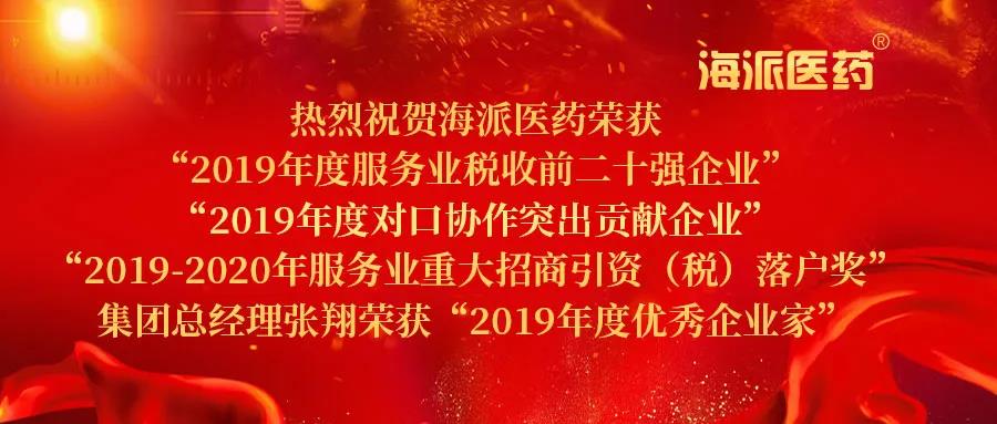 在此次會(huì)議中,海派醫(yī)藥榮獲「2019年度服務(wù)業(yè)稅收前二十強(qiáng)企業(yè)」、「2019年度對(duì)口協(xié)作突出貢獻(xiàn)企業(yè)」、「2019-2020年服務(wù)業(yè)重大招商引資(稅)落戶獎(jiǎng)」,集團(tuán)總經(jīng)理張翔榮獲「2019年度優(yōu)秀企業(yè)家」稱號(hào)。