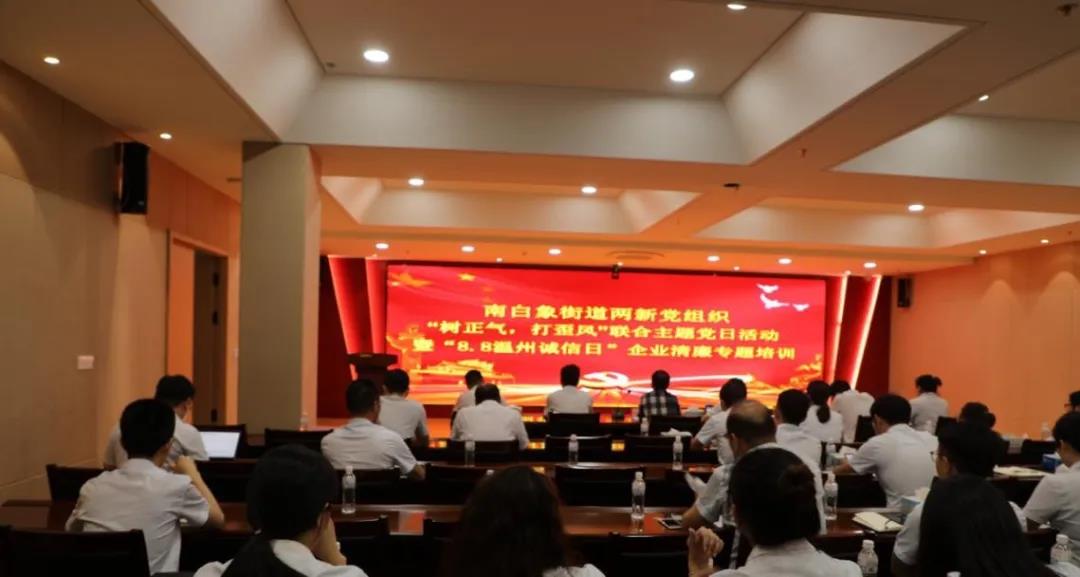 正值“八八溫州誠信日”來臨之際,為切實(shí)加強(qiáng)公司干部及員工的誠信清廉意識(shí),持續(xù)向企業(yè)發(fā)展注入誠信廉潔正能量,深化思想預(yù)防工作,維護(hù)風(fēng)清氣正的工作環(huán)境。8月8日上午,海派醫(yī)藥黨支部聯(lián)合南白象街道黨工委以及轄區(qū)各兩新組織,開展“樹正氣、打歪風(fēng)”聯(lián)合主題黨日活動(dòng)暨海派醫(yī)藥“八八誠信清廉周”清廉企業(yè)專題培訓(xùn),集中學(xué)習(xí)習(xí)近平總書記在企業(yè)家座談會(huì)上講話精神和“樹正氣、打歪風(fēng)”工作要求。