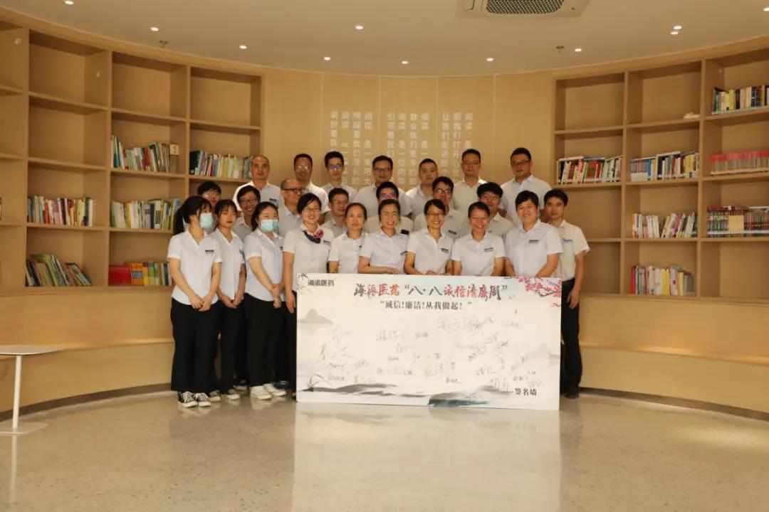 會(huì)議最后,海派醫(yī)藥職工開展重溫入職宣誓儀式,并紛紛在“誠信!廉潔!從我做起!”簽字墻前簽名,莊重地許下對(duì)誠信清廉的承諾。
