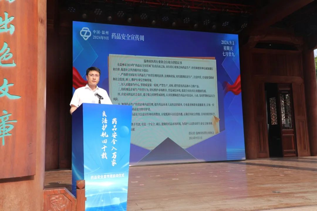 在啟動儀式上,溫州市醫(yī)藥行業(yè)協(xié)會會長、海派醫(yī)藥集團董事長張翔先生代表溫州市醫(yī)藥行業(yè)發(fā)聲,提出倡議,呼吁藥品生產(chǎn)、經(jīng)營及使用單位嚴格遵法守規(guī),接受社會監(jiān)督,共塑行業(yè)良好形象。